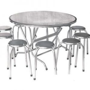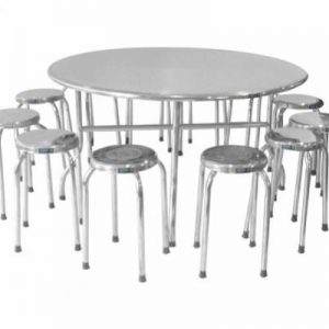 Bộ bàn inox tròn là những bộ sản phẩm gồm cả bàn và ghế tròn. Có kích thước hợp lý, cấu tạo đơn giản, kiểu dáng sang trọng, phục vụ được cho 6 – 10 người cùng một lúc, đây hiện đang là dòng sản phẩm rất được ưa thích ở các nhà hàng, quán ăn hay trong các bữa tiệc lớn, gia đình đông người.