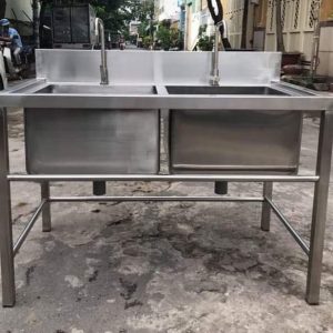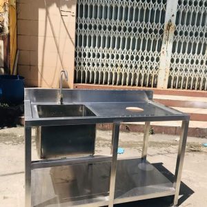 Bàn chậu rửa inox: nhiều kiểu dáng mẫu mã, phù hợp cho nhiều mục đích sử dụng như: sơ chế thức ăn, rửa dọn bát đĩa bẩn, … Có thể lắp kèm thêm hộp bẫy mỡ để giảm thiểu nguy cơ tắc cống do mỡ và thức ăn thừa